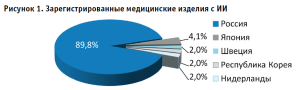 Нами были проанализированы сведения о зарегистрированных МИ с ИИ на 17.10.2025. Анализ позволил сделать следующие заключения: всего зарегистрировано 49 МИ с ИИ, из которых 44 произведено в России, одно – в Нидерландах, одно – в Корее, одно – в Швеции, два – в Японии. В реестр отечественного ПО на момент написания статьи внесены 34 зарегистрированных МИ с ИИ. Таким образом, на рынке МИ с ИИ в Российской Федерации преобладают отечественные продукты.