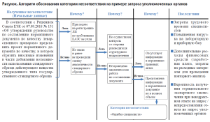 Алгоритм обоснования категории несоответствия на примере запроса уполномоченных органов представлен на рисунке. Представленному запросу уполномоченных органов была присвоена категория «Ошибка специалиста».
