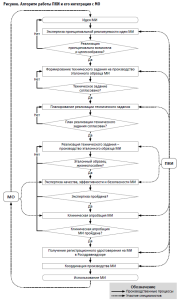 Как следует из алгоритма, представленного на рисунке, в задачи ПКИ входит выявление и экспертиза потребностей МО в новых видах МИ, поддержка процесса составления технических заданий на проектирование и разработку таких МИ, планирование реализации и реализация этих технических заданий, экспертиза качества новых видов МИ и их клиническая апробация, а также координация производства таких МИ. Таким образом, основными направлениями деятельности ПКИ является аттестация и клинические исследования медицинского оборудования и медицинского программного обеспечения, в частности: