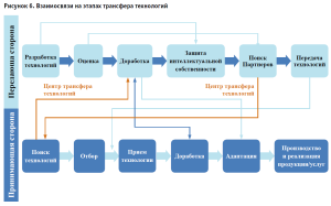 С учетом ролей ключевых участников, можно определить более сложные взаимосвязи на этапах трансфера технологий.