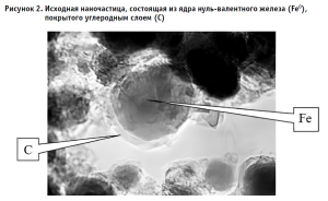 В качестве нанокомпозитов были выбраны наночастицы нуль-валентного железа (Fe0) (3–5 нм), покрытые углеродным слоем толщиной 1–2 нм (Fe@C), которые синтезируются на базе ФГБУН «Институт физики металлов им. М.Н. Михеева» Уральского отделения Российской Академии наук (рис. 2).