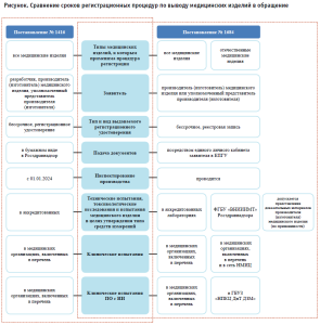 На рисунке представлены сроки регистрационных процедур по выводу медицинских изделий в обращение согласно редакциям Правил государственной регистрации медицинских изделий.