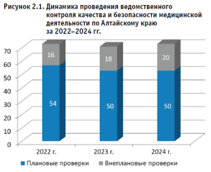 Динамика проведения ведомственного и внутреннего контроля качества и безопасности медицинской деятельности представлена на рисунках 2.1 и 2.2.