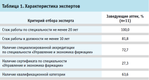 В таблице 1 представлены критерии отбора экспертов.