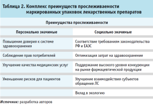 Нами были выделены две группы – персонально значимые и социально значимые, структурированные в зависимости от персональной безопасности пациента и улучшения общественного здоровья. Следовательно, прослеживаемость ЛП позволяет вести учет оборота лекарственных средств не только для целей и задач государства, но и персонализации лекарственной помощи пациентов.