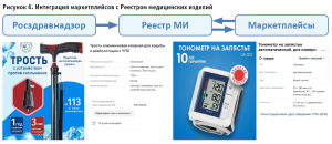 Росздравнадзор активно развивает интеграционные процессы с маркетплейсами, направленные на обеспечение доступа к Государственному реестру медицинских изделий и организаций, осуществляющих их производство и изготовление (рис.6). Особое внимание уделяется разработке и внедрению алгоритмов для оперативного взаимодействия, что позволяет эффективно блокировать предложения о реализации продукции, обладающей признаками медицинских изделий, в случаях выявления нарушений.