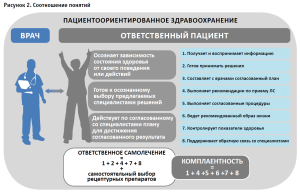 Концептуальные обсуждения в литературе разных понятий (пациентоориентированное здравоохранение, ответственный пациент, ответственное самолечение, приверженность лечению и др.), вводимых в последние годы в связи с ценностноориентированным подходом в здравоохранении, приводят к необходимости анализа соотношения между ними (рис. 2).